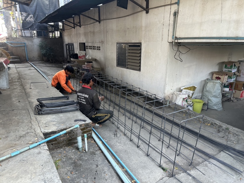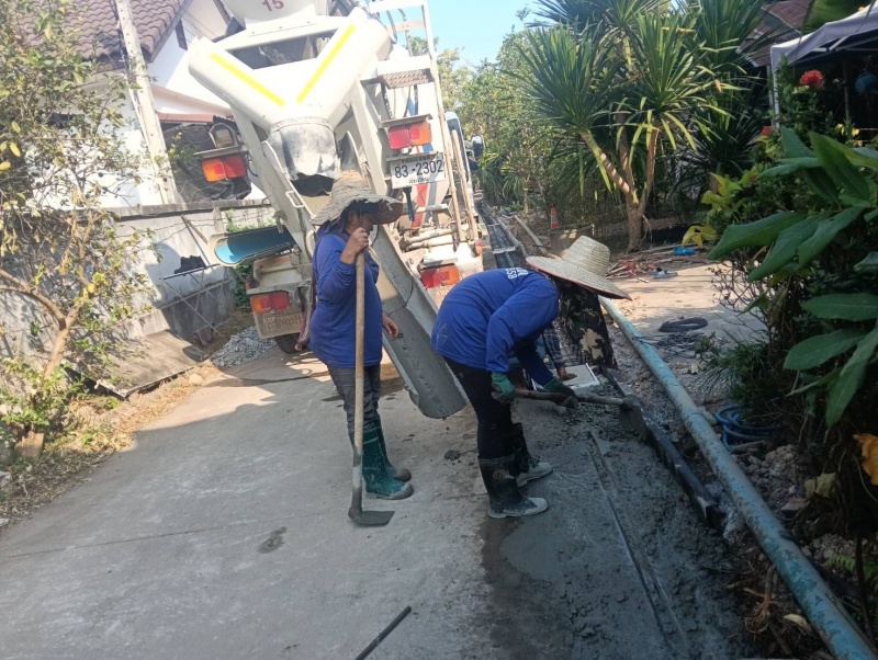 - ขุดดินและผูกเหล็ก งานถนนพร้อมรางระบายน้ำ บริเวณซอยป้าขันแก้ว ป่าขาม