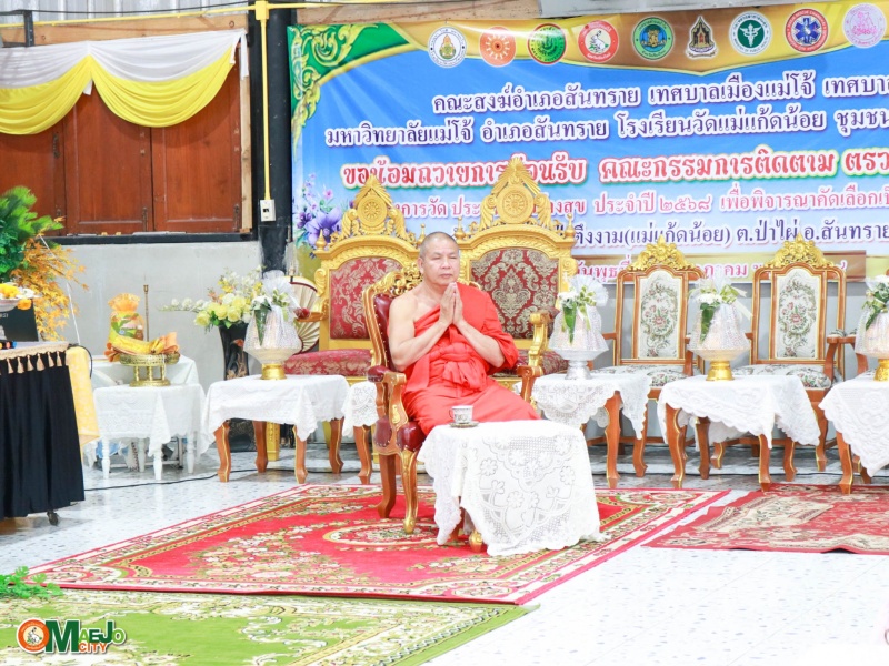 วันที่ 13 กุมภาพันธ์ 2569 นางทัศนีย์ ทิพนี นายกเทศมนตรีเมืองแม่โจ้ พร้อมด้วยคณะผู้บริหาร สมาชิกสภาเทศบาลเมืองแม่โจ้ รองปลัดเทศบาล หัวหน้าส่วนราชการ ข้าราชการ และพนักงานเจ้าหน้าที่ที่เกี่ยวข้อง เข้าร่วมกิจกรรม มอบใบประกาศการสอบไล่ตามลำดับชั้น ตามหลักสูตรการศึกษา ของศูนย์ศึกษาพระพุทธศาสนาวันอาทิตย์ ณ วัดศรีดอนชัยป่าตึงงาม (วัดแม่แก้ดน้อย)