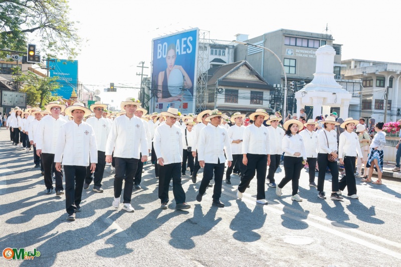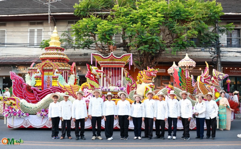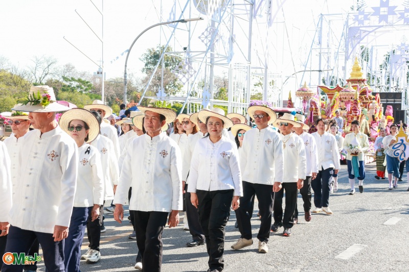 นางทัศนีย์ ทิพนี นายกเทศมนตรีเมืองแม่โจ้ พร้อมด้วยคณะผู้บริหาร และสมาชิกสภาเทศบาลเมืองแม่โจ้ เข้าร่วมเดินขบวนรถบุปผชาติในนามอำเภอสันทราย ภายในงานมหกรรมไม้ดอกไม้ประดับ จังหวัดเชียงใหม่ ครั้งที่ 49 ประจำปี 2569 ซึ่งจัดขึ้นอย่างยิ่งใหญ่ ณ บริเวณเชิงสะพานนวรัฐ จังหวัดเชียงใหม่