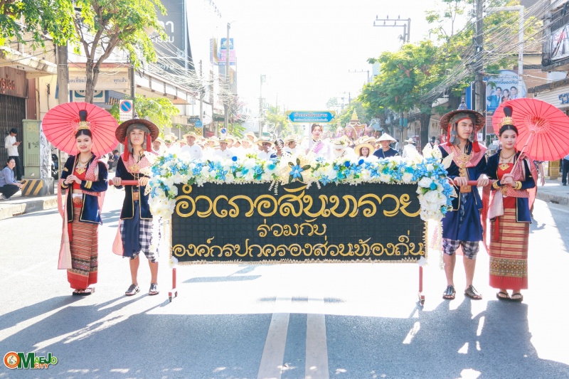 เทศบาลเมืองแม่โจ้ ร่วมเดินขบวนในนามอำเภอสันทราย งานมหกรรมไม้ดอกไม้ประดับ จังหวัดเชียงใหม่ ครั้งที่ 49