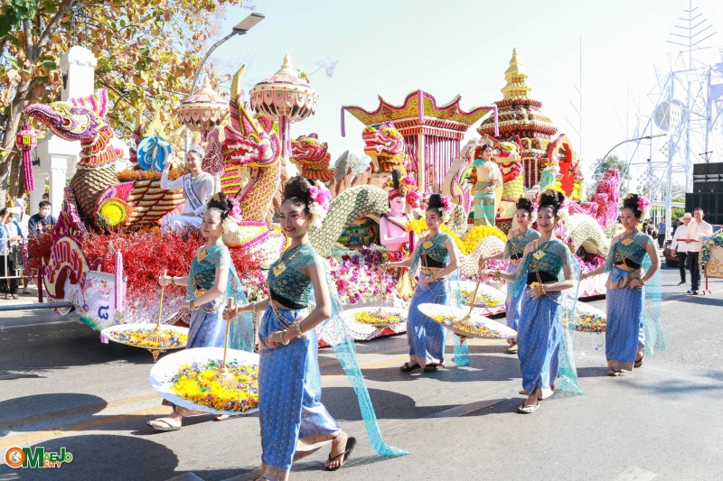 ภายในงานมีขบวนรถบุปผชาติจากหน่วยงานภาครัฐและเอกชน รวมทั้งสิ้น 24 ขบวน เคลื่อนขบวนจากสะพานนวรัฐ ผ่านถนนท่าแพ ข่วงประตูท่าแพ รอบคูเมือง และสิ้นสุดที่สวนสาธารณะหนองบวกหาด ท่ามกลางบรรยากาศที่คึกคัก มีนักท่องเที่ยวทั้งชาวไทยและชาวต่างชาติร่วมชมความงดงามตลอดเส้นทาง
