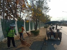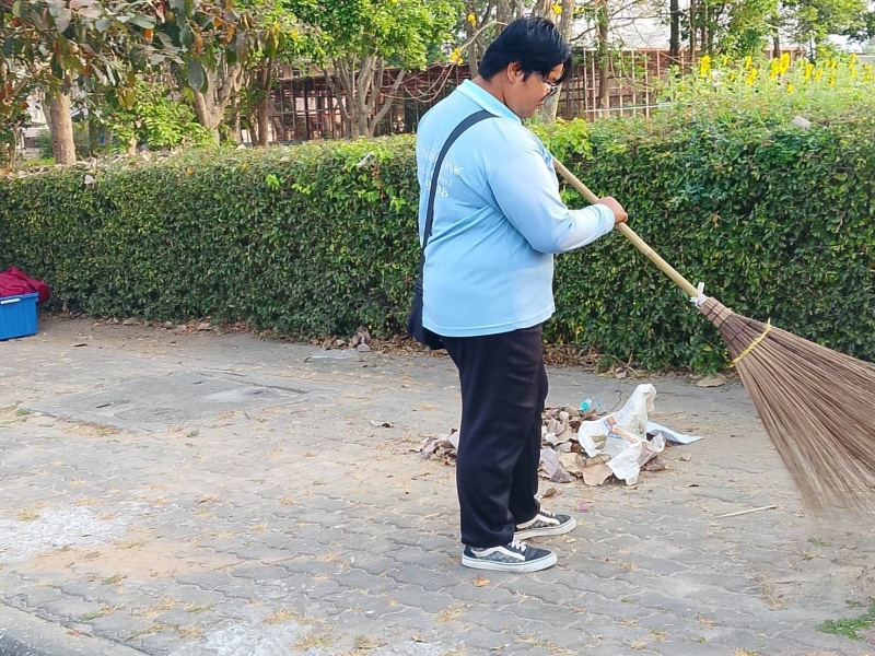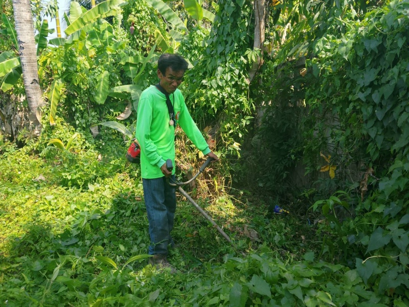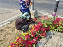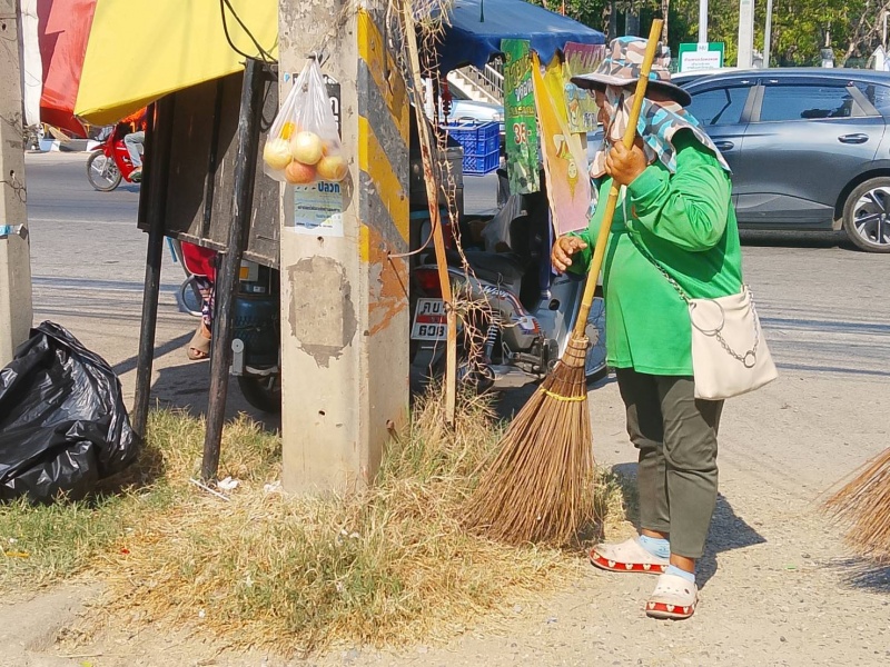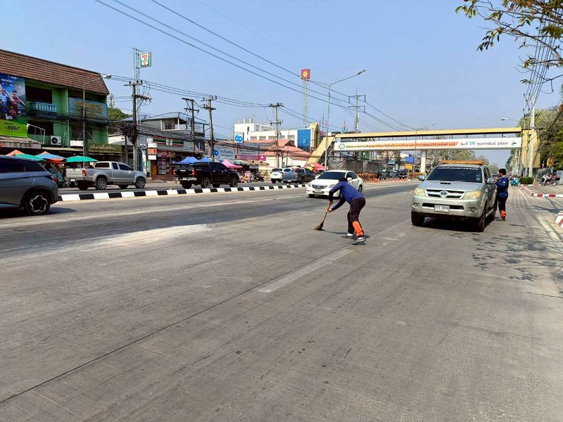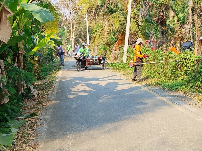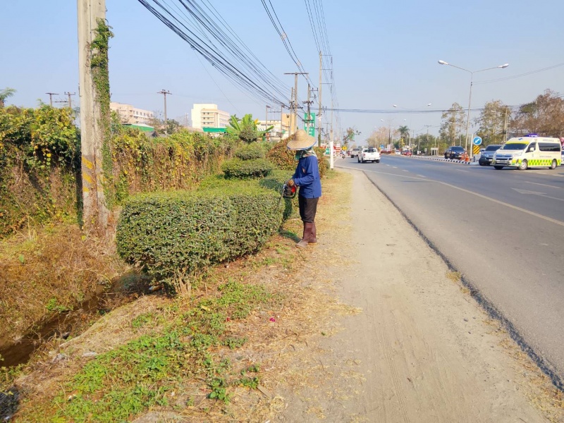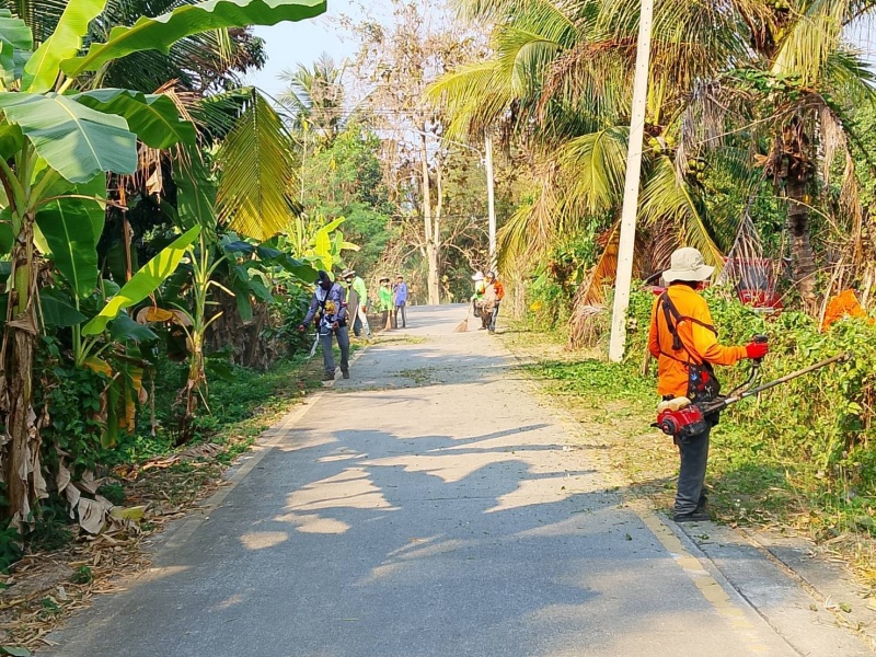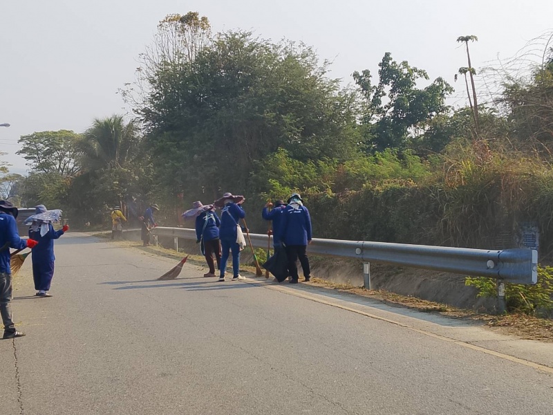 ตัดหญ้าและเก็บขยะสองข้างทาง บนถนนสายหลัก ได้แก่