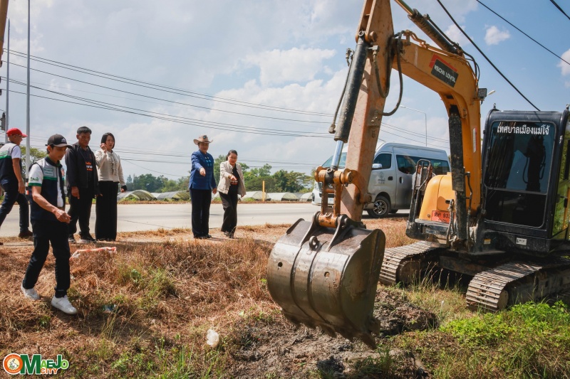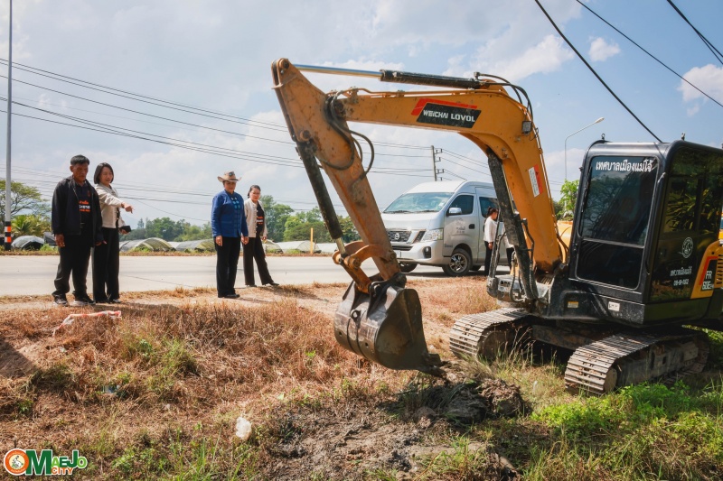 เทศบาลเมืองแม่โจ้ ลงพื้นที่ขุดลอกลำเหมืองริมถนนสายหลักเชียงใหม่ - พร้าว