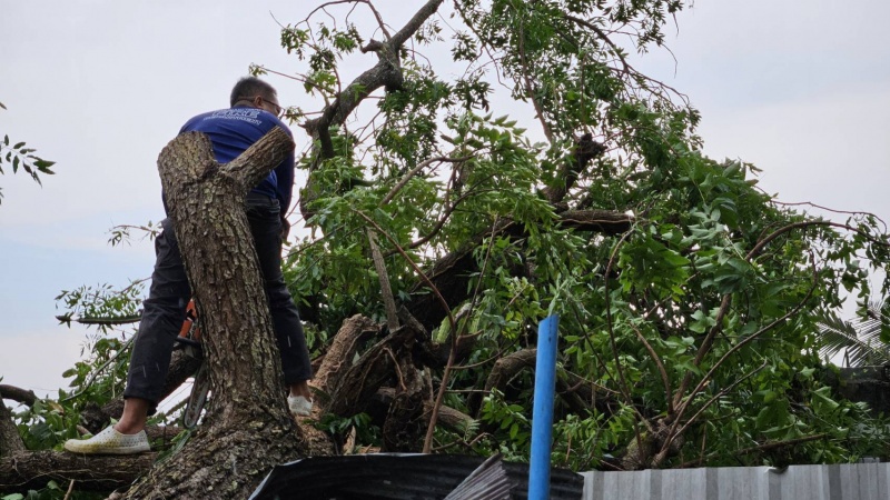 นายกเทศมนตรีเมืองแม่โจ้ ลงพื้นที่ทันที หลังได้รับแจ้งเหตุต้นไม้ล้มทับบ้านเรือนประชาชน จากพายุฤดูร้อน