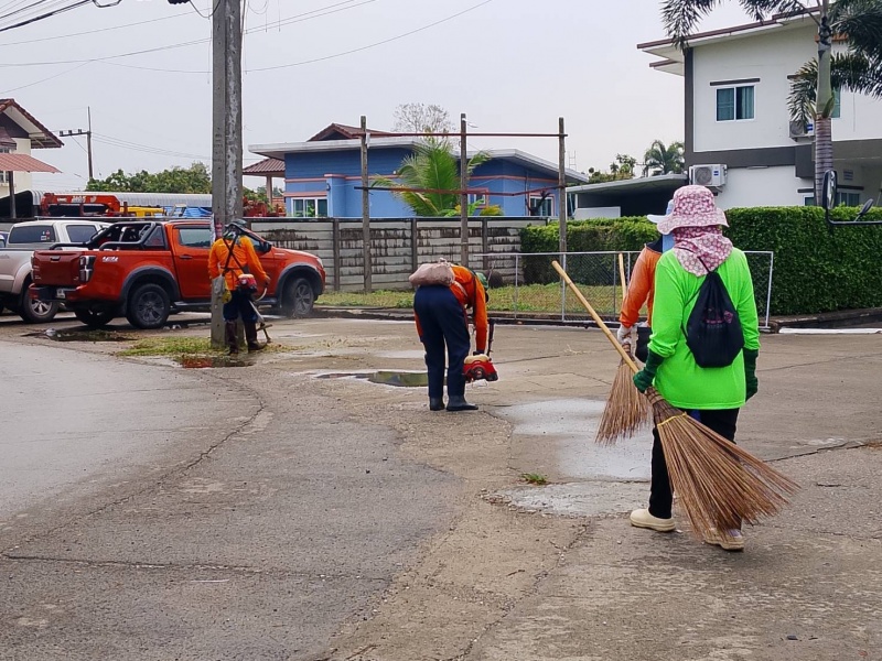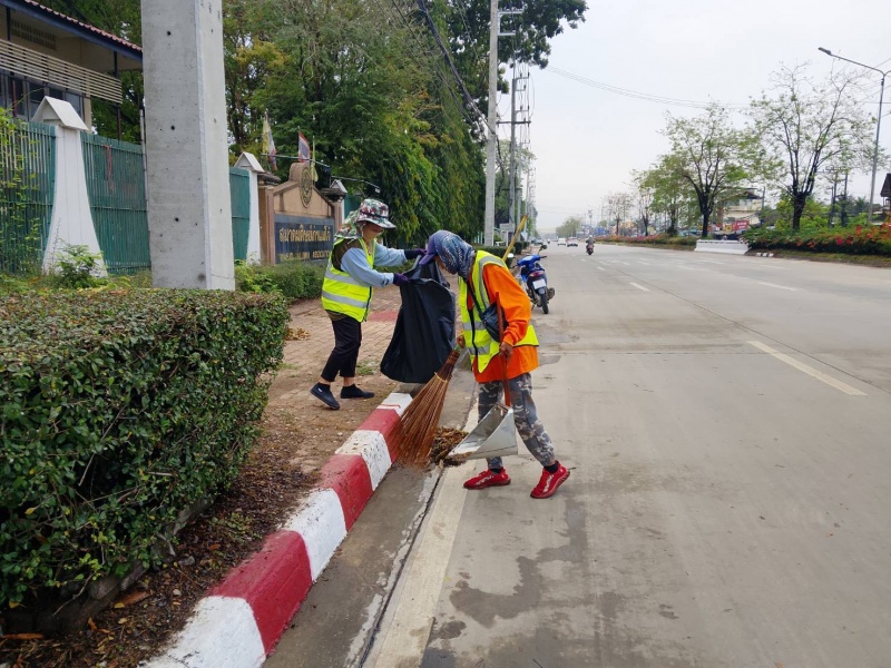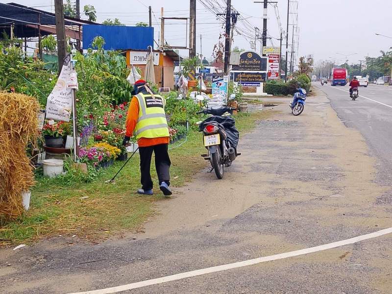 - ดำเนินการตัดหญ้าและเก็บขยะสองข้างทาง บนถนนสายหลัก ได้แก่