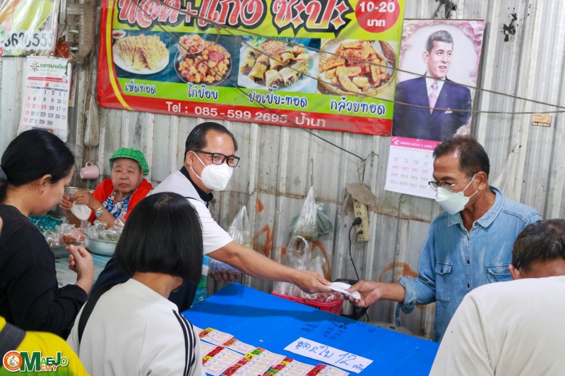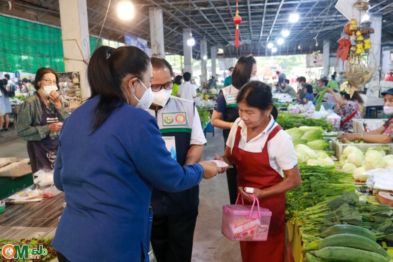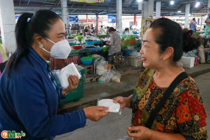 วันที่ 1 เมษายน 2569 นางทัศนีย์ ทิพนี นายกเทศมนตรีเมืองแม่โจ้ พร้อมด้วย คณะผู้บริหาร สมาชิกสภาเทศบาลเมืองแม่โจ้ ปลัดเทศบาล รองปลัดเทศบาล และพนักงานเจ้าหน้าที่เทศบาลเมืองแม่โจ้ ลงพื้นที่ รณรงค์แจกหน้ากากอนามัยให้แก่พ่อค้าแม่ค้าและประชาชน เพื่อป้องกันผลกระทบจากสถานการณ์ ฝุ่นละอองขนาดเล็ก PM 2.5