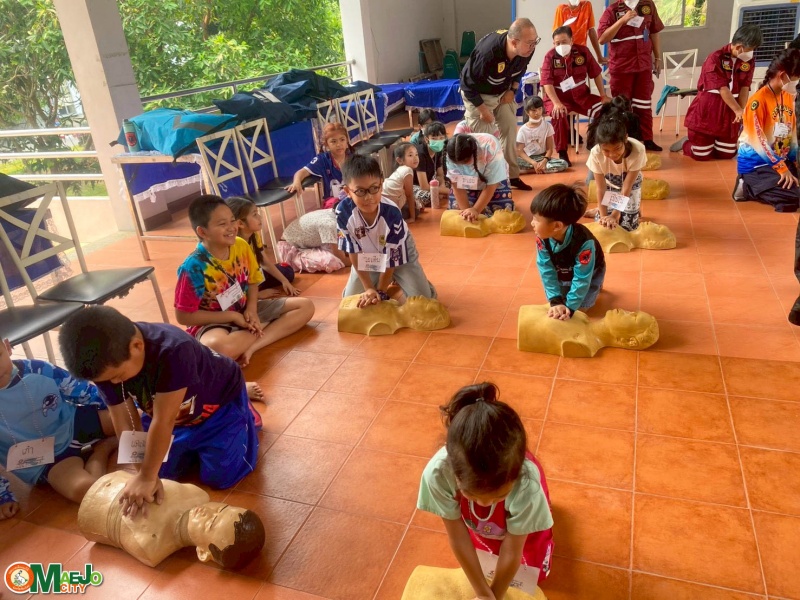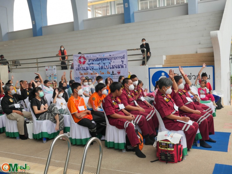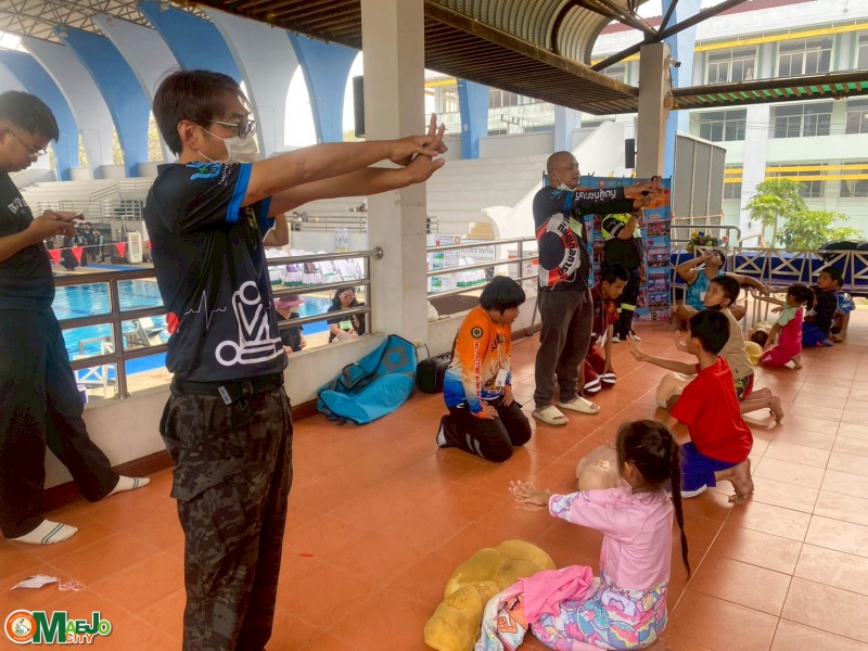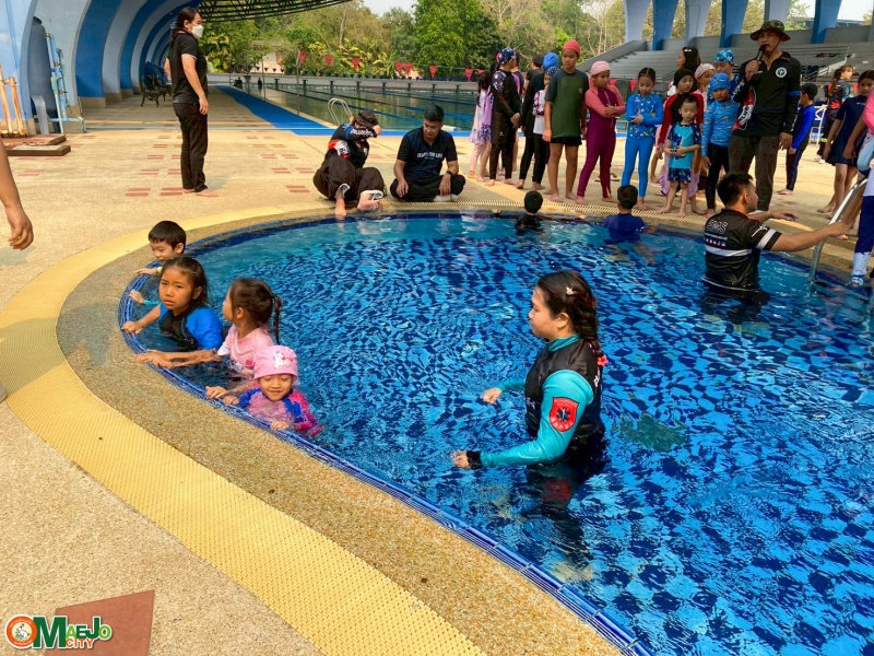 เทศบาลเมืองแม่โจ้ เปิดโครงการ "สานพลังชุมชนผู้ก่อการดี...เด็กแม่โจ้โตไปไม่จมน้ำ" เสริมทักษะว่ายน้ำเพื่อเอาชีวิตรอด