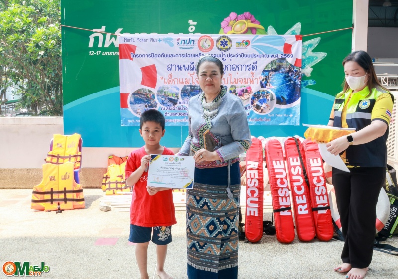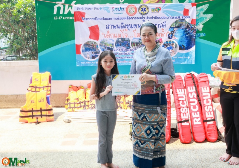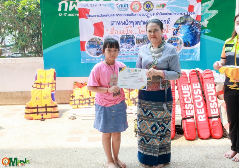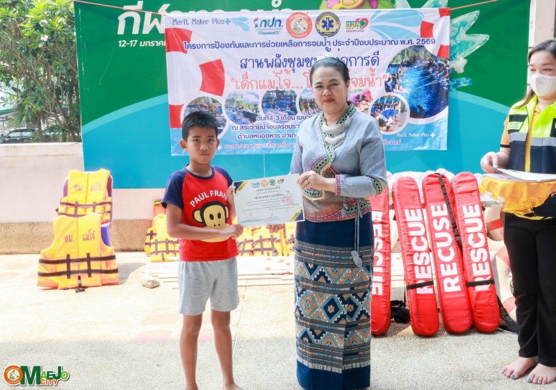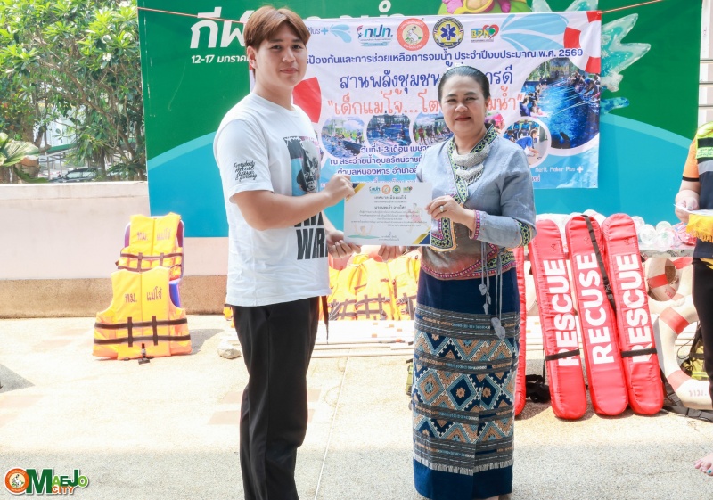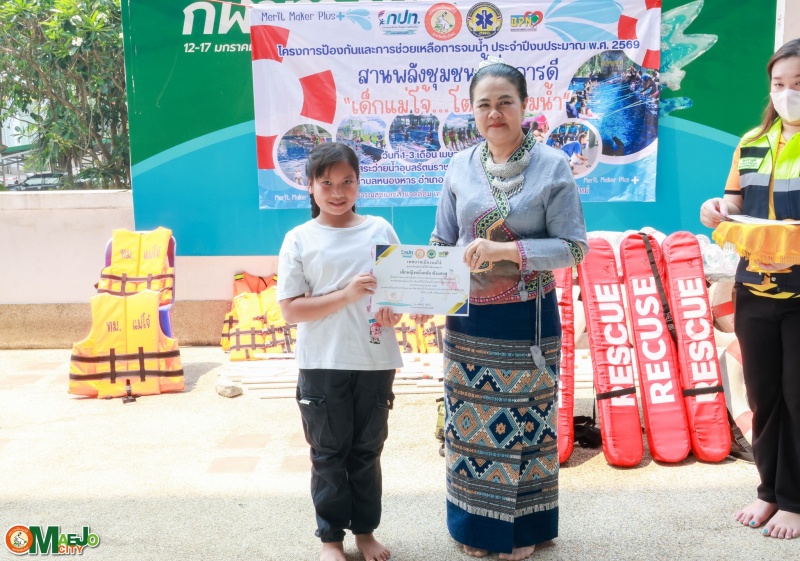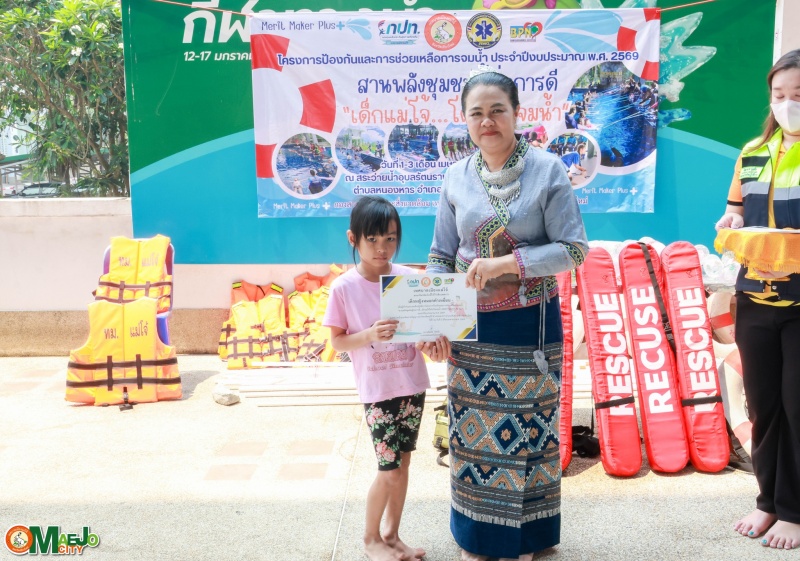 เทศบาลเมืองแม่โจ้ จัดพิธีปิดโครงการ "สานพลังชุมชนผู้ก่อการดี...เด็กแม่โจ้โตไปไม่จมน้ำ" พร้อมมอบใบประกาศนียบัตรแก่ผู้ผ่านการอบรม