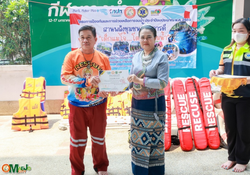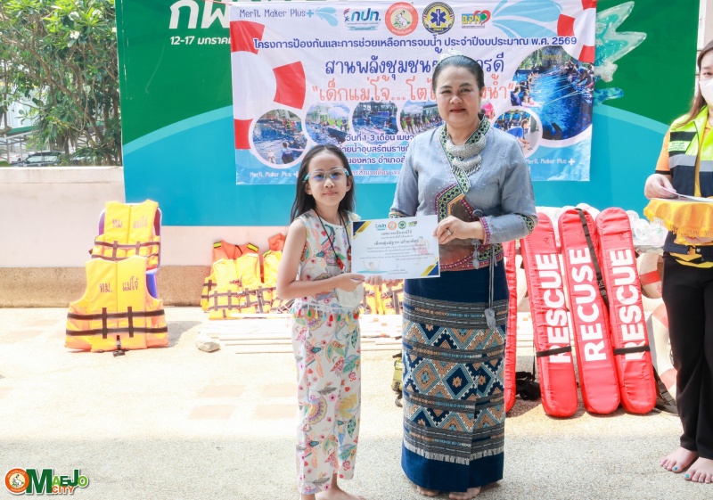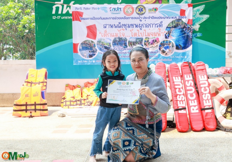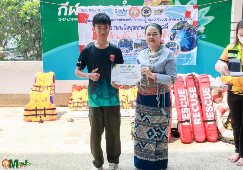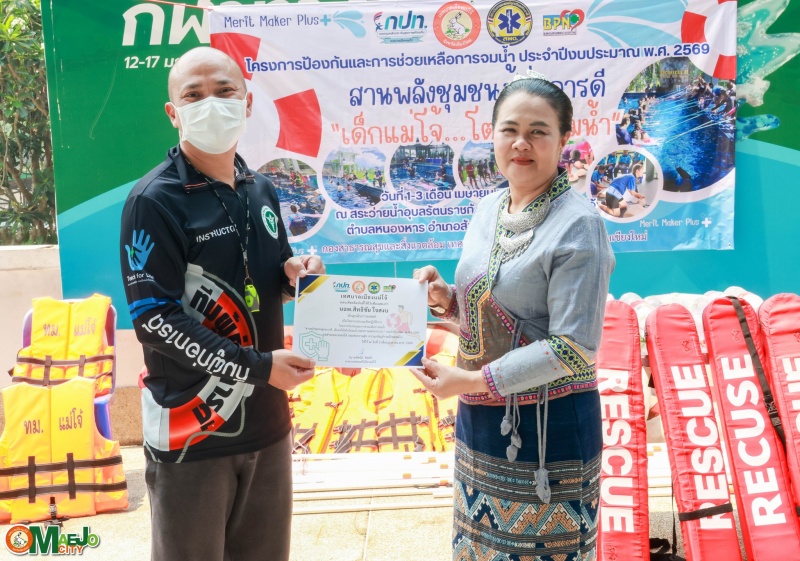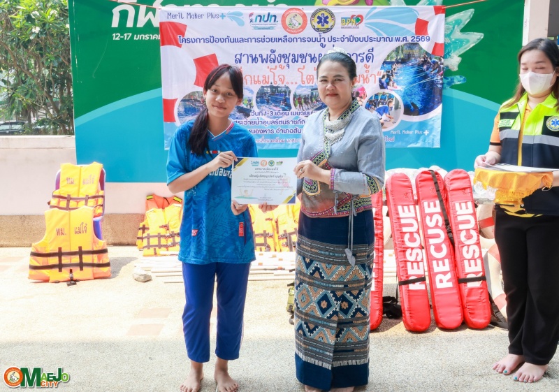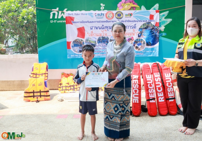 เทศบาลเมืองแม่โจ้ จัดพิธีปิดโครงการ "สานพลังชุมชนผู้ก่อการดี...เด็กแม่โจ้โตไปไม่จมน้ำ" พร้อมมอบใบประกาศนียบัตรแก่ผู้ผ่านการอบรม