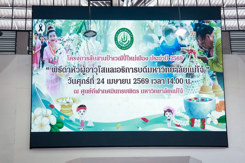 วันที่ 24 เมษายน 2569 นางทัศนีย์ ทิพนี นายกเทศมนตรีเมืองแม่โจ้ เข้าร่วม โครงการสืบสานประเพณีปีใหม่เมือง ประจำปี 2569 ?พิธีดำหัวผู้อาวุโสและอธิการบดีมหาวิทยาลัยแม่โจ้?
